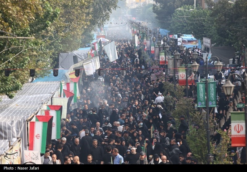جمعیت انبوه مردم تهران که از میدان امام حسین (ع) عازم شهر ری شده‌اند، به سمت قبله تهران در حرکت است و در طول مسیر قدم به قدم بر این جمعیت افزوده می‌شود تا به خیل جمعیتی که در حرم حضرت عبدالعظیم حسنی (ع)، منتظر مراسم ظهر اربعین هستند،‌ بپیوندند.