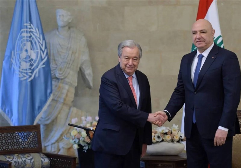 جوزف عون، رئیس جمهور لبنان در نشستی که با آنتونیو گوترش داشت اعلام کرد که لبنان بر ضرورت خروج نیروهای اشغالگر اسرائیلی از خاک لبنان در مهلت تعیین شده در توافق آتش بس تاکید دارد.
