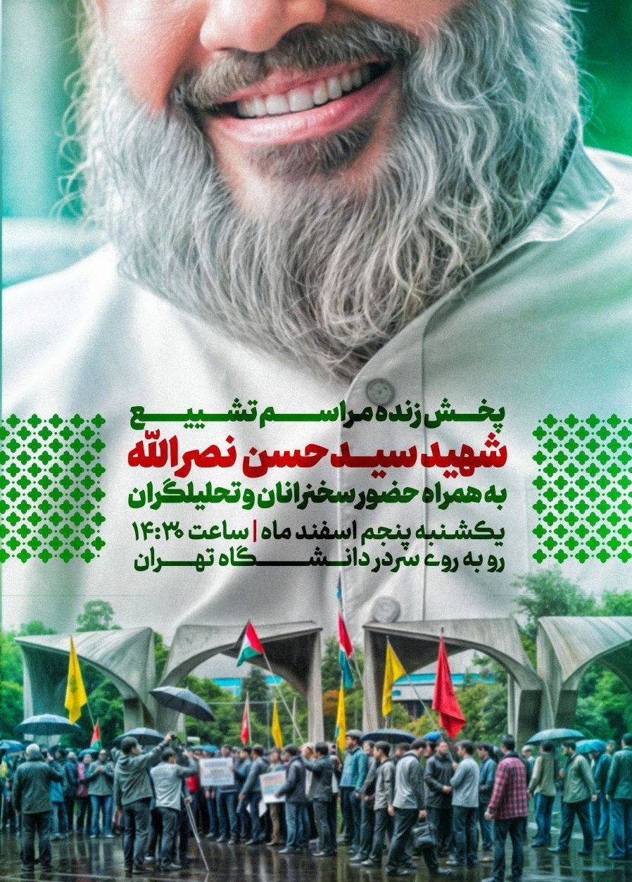 به گزارش گروه دانشگاه خبرگزاری تسنیم، بسیج دانشجویی دانشگاه تهران در برنامهای با عنوان «حزبالله زنده است» اقدام به پخش زنده مراسم تشییع و وداع با شهید سیدحسن نصرالله میکند.