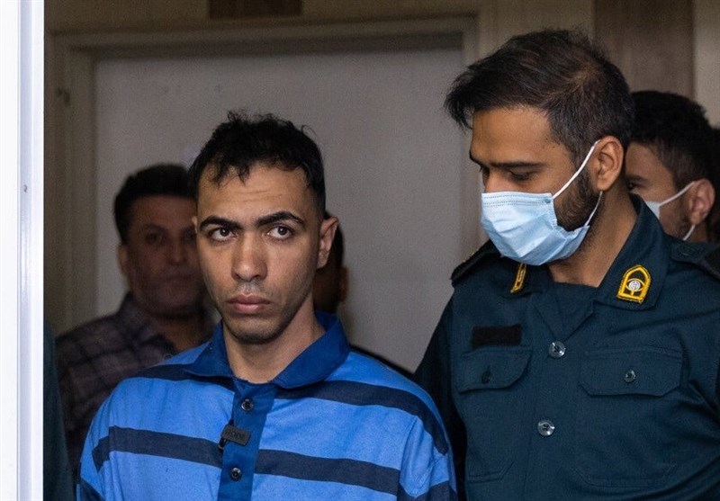 ساعت 9 صبح، متهم با لباس آبی راهراه پلیس آگاهی، همراه با یک مأمور، پلههای ساختمان عملیات پلیس آگاهی تهران را بالا میآید تا در برابر خبرنگاران قرار گیرد. بهخلاف تصور، او نه خجالتزده بود و نه تلاشی برای پنهان کردن چهرهاش کرد، با آرامشی غیرمنتظره مقابل دوربینها ایستاد و حتی برای ضبط فیلمها همکاری کرد.