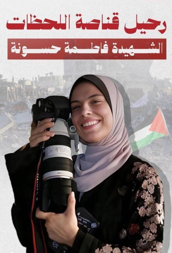 «فاطمه حسونا؛ عکاس خبرنگار غزه؛ به همراه خانوادهاش در بمباران جنگندههای اشغالگر به شهادت رسیدند»؛ خبر به رسانهها رسید و الجزیره، المیادین، القدس العربی و العربی الجدید آن را منتشر کردند و نوشتند که چشمان غزه؛ راوی تصویری غزه و روایتگر رنجها، مقاومت و زندگی در غزه به شهادت رسید.