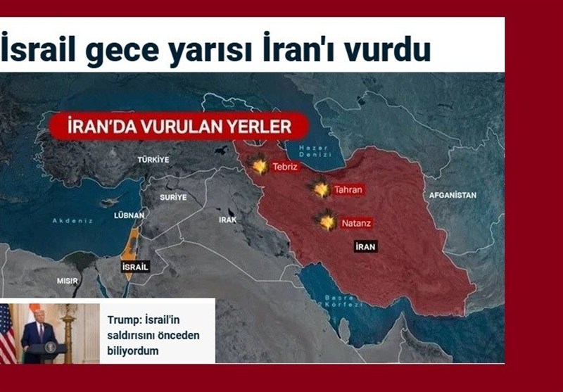 اغلب رسانههای ترکیه تیتر اخبار و گزارش های خود به این نکته اشاره کردهاند که اطلاع دونالد ترامپ رییس جمهور آمریکا از تصمیم رژیم صهیونیستی برای حمله به ایران، نکته مهمی است که نمیتوان به سادگی از کنار آن گذشت.