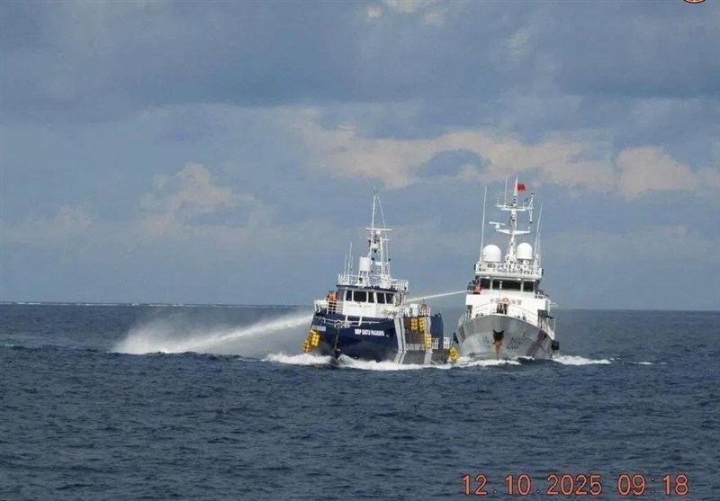 به گزارش گروه بینالملل خبرگزاری تسنیم، گارد ساحلی فیلیپین روز یکشنبه تصاویری منتشر کرد که نشان میدهد یک کشتی گشتزنی گارد ساحلی چین (در سمت راست تصویر) همان روز با پاشش آب به سمت کشتی گشتزنی «داتو پاگبویا» متعلق به اداره شیلات و منابع آبزی فیلیپین در نزدیکی جزیره پاگآسا ( که چین آن را جزیره «جونگیه» مینامد) حمله کرده است.