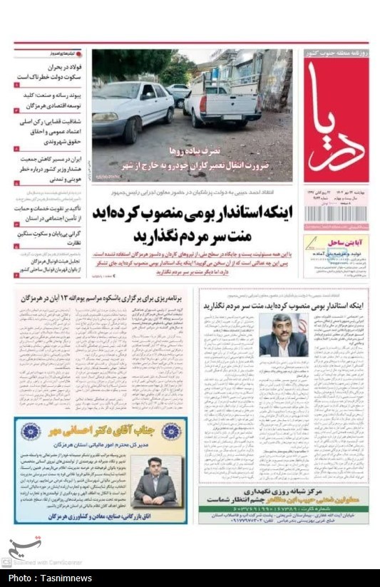 در تازهترین شماره روزنامههای محلی هرمزگان، محور اصلی مطالب به موضوعات متنوعی از حوزه اقتصادی و سرمایهگذاری، مسائل مالیاتی و مسائل سیاسی لزوم ارتقا برخی مناطق استان به بخش و مسائل آموزشی اختصاص یافته است؛ موضوعاتی که تصویری جامع از دغدغهها و اولویتهای روز استان ارائه میدهد.