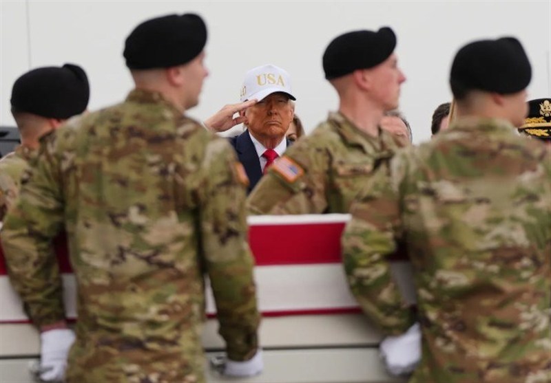 به گزارش گروه بین الملل خبرگزاری تسنیم، در مراسمی سنگین و اندوهبار در پایگاه هوایی دوور در ایالت دلاوِر، دونالد ترامپ رئیس جمهور ایالات متحده روز شنبه با خانوادههای شش سرباز ارتش ذخیره آمریکا دیدار کرد که در حمله پهپادی ایران به محل استقرارشان در کویت کشته شده بودند. این مراسم نخستین «انتقال محترمانه» پیکر نظامیان آمریکایی از جنگ با ایران بود؛ جنگی که ترامپ آن را بدون مجوز رسمی کنگره و با استناد به ادعای مبهم «تهدید فوری» آغاز کرد.