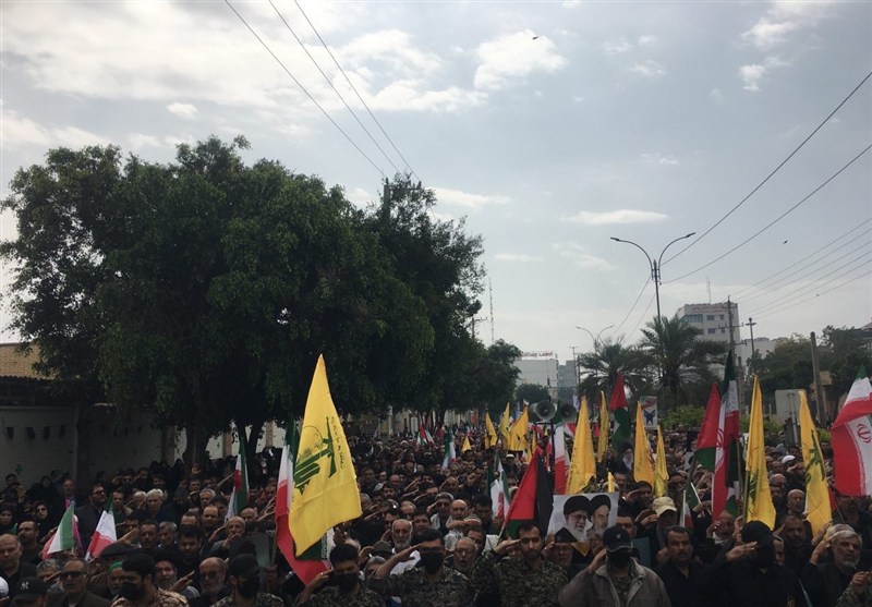 نماینده ولی فقیه در استان، امام جمعه بوشهر، استاندار، پیشکسوتان جهاد و شهادت، جوانان، نوجوانان، زنان و مردان، دوشادوش یکدیگر، با مشت‌های گره کرده و فریادهای کوبنده، حمایت قاطع خود را از مردم مظلوم فلسطین اعلام کردند.