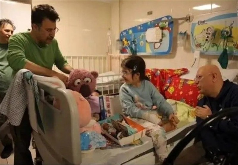محمدبحرانی و هومن حاجی عبداللهی همراه با عروسک جناب‌خان به عیادت کودکان مجروح در بیمارستان رفتند.