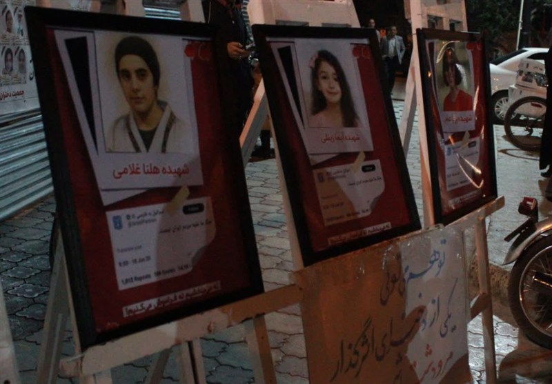 در میان جمع، تصاویر کودکان و نوجوانانی که دیگر در کنار خانوادههایشان نبودند و توسط رژیم سفاک صهیونیستی و آمریکای جنایتکار و کودککش به شهادت رسیده بودند. این تصاویر همانند شمعهایی خاموش اما پرنور، در گوشهای از خیابان بر تابلوهایی نقش بسته بود. قابها با تصاویر معصومانۀ آنها جان گرفته بودند و هر رهگذری را، هرچند برای چند لحظه، در سکوتی عمیق فرو میبردند؛ سکوتی که تنها با آوای آرامی که از بلندگوها به گوش میرسید شکسته میشد.