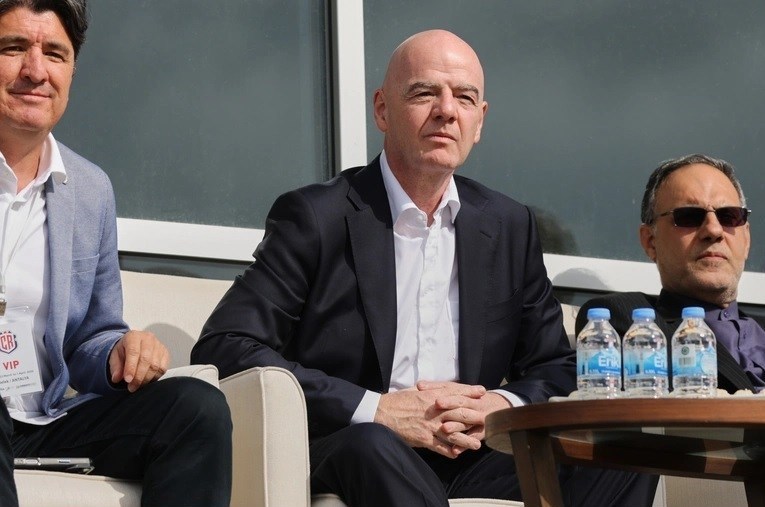 اینفانتینو در تاریخ 31 مارس (11 فروردین) به ترکیه سفر کرد تا پیش از بازی دوستانه ایران مقابل کاستاریکا در شهر ساحلی آنتالیا، مستقیماً با اعضای تیم ملی ایران دیدار کند. اینفانتینو برای حضور در آنجا، دراماتیک‌ترین مسابقه روز را از دست داد یعنی دیدار بین تیم‌های ایتالیا و بوسنی‌و‌هرزگوین در فینال پلی‌آف اروپایی که در نهایت قهرمان سابق جام جهانی (آتزوری) از راهیابی به این مسابقات بازماند.