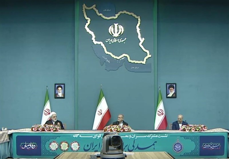 ראש הרשות המבצעת, הנשיא מסעוד פזשכיאן, וראשי הרשות המחוקקת והרשות השופטת, יו״ר הפרלמנט מוחמד באקר קאליבאף וראש מערכת המשפט גולמחסין מוחסני־אג׳אי, פרסמו ביום שני הודעה משותפת, ובה הביעו את תודתם לעם האיראני החכם, האציל והנבון על עמידתו במהלך מלחמת הטרור האחרונה נגד המדינה, שבאה לידי ביטוי במהומות שנוהלו על ידי המשטר הציוני וארצות הברית.