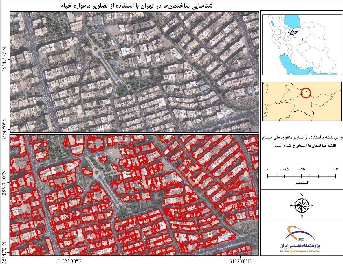 מומחים במכון המחקר לחלל של איראן הכינו מפה מדויקת ועדכנית של מבנים בחלק מהאזורים הצפוניים של טהראן באמצעות תמונות לוויין ח׳ייאם ואלגוריתמים מתקדמים של בינה מלאכותית; פעולה הנחשבת לצעד יעיל בפיתוח יישומים מעשיים של נתוני לוויין מקומיים בניהול וניטור עירוניים. פרויקט מקצועי זה בתחום חישה מרחוק יושם על ידי קבוצת השתמשות המשימה של מכון המחקר לחלל ומתמקד בחילוץ מדויק של מאפייני מבנים מתמונות לוויין ברזולוציה גבוהה.