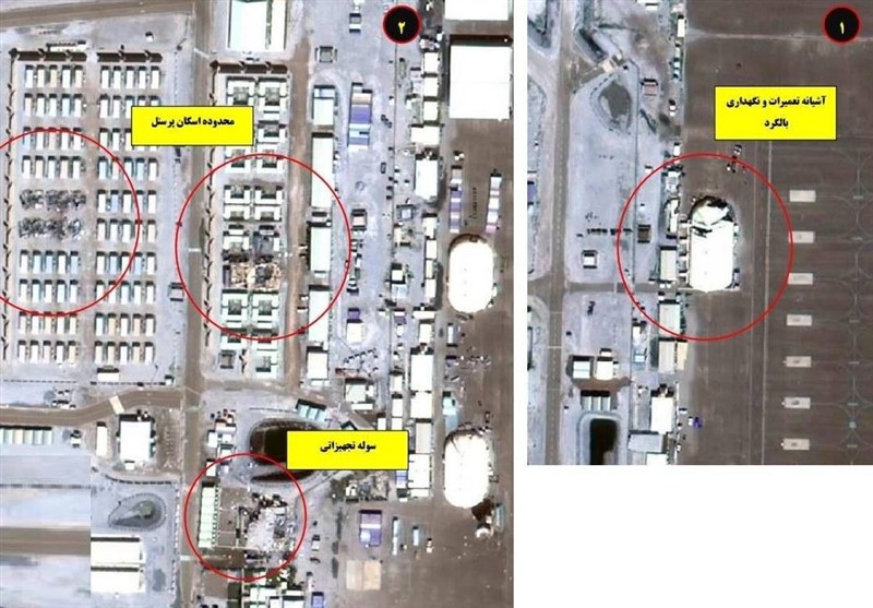 על פי סוכנות הידיעות טסנים, משרד יחסי הציבור של צבא הרפובליקה האסלאמית של איראן פרסם תמונות לוויין של רחפני תקיפה ותקיפות מדויקות שפגעו בבסיס אל-אדירי האמריקאי.