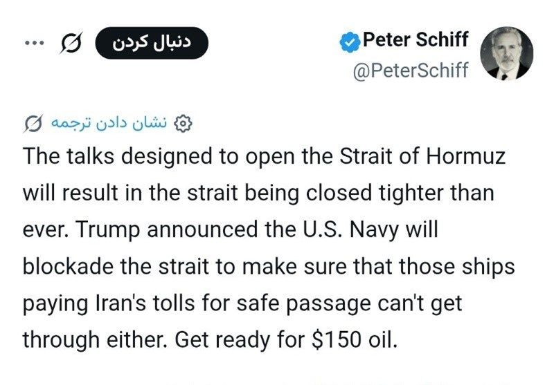 פיטר שיף, כלכלן בולט, חזה כי צעדי טראמפ לא רק שלא יפתחו את המצר, אלא אף יובילו לסגירה הדוקה יותר שלו. הוא הזהיר מפני "נפט במחיר 150 דולר" והצהיר כי "איראן כבר מבינה שארצות הברית נמצאת בעמדת חולשה."
