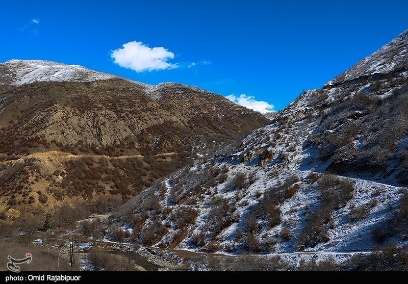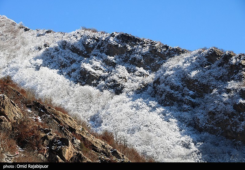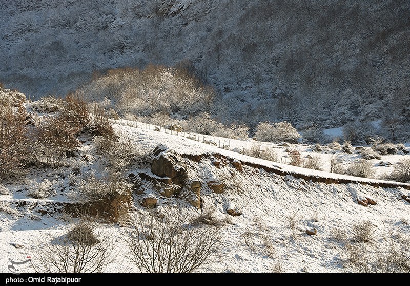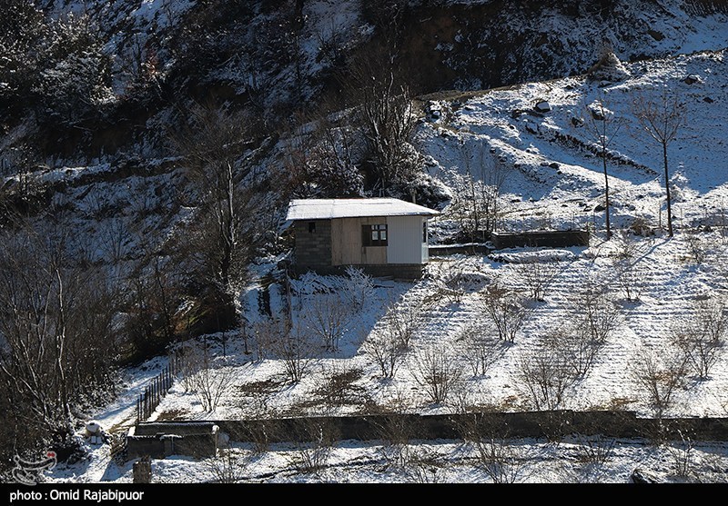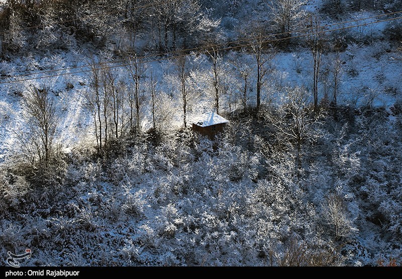 غطى تساقط الثلوج واجهة منطقة اشكور رحيم آباد السياحية في جيلان بالبياض.