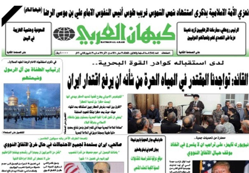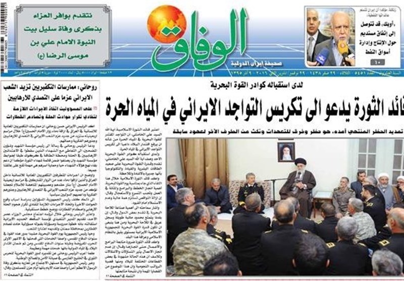 تناولت صحف طهران الصادرة صباح الثلاثاء، قضايا محلية واقليمية ودولية متعددة، ابرزها لقاء قائد الثورة الاسلامية مع قادة القوات البحرية الايرانية وتحرير مدينة حلب السورية.