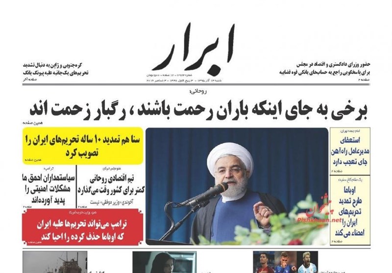 عناوين الصحف الايرانية2016/12/3؛ ايران لن تقف مكتوفة الايدي