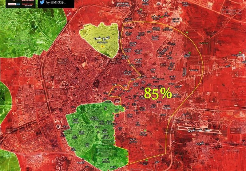 دائرة المعارك تتركز حاليا في "الشيخ سعيد" من الجهة الجنوبية للاحياء الشرقية ومحور بستان القصر حيث تمكن الجيش من تحقيق تقدم باتجاه حي "الزبدية"، و اذا ماتمكن الجيش من السيطرة عليه سيكون حي بستان القصر ابرز معاقل جبهة النصرة تحت مرمى نيران الجيش بشكل كامل.