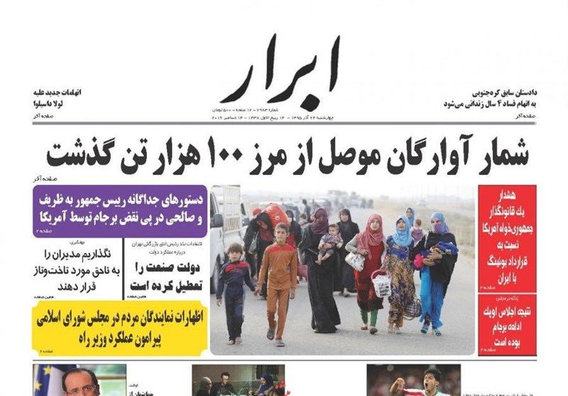 عناوين الصحف الايرانية 2016/12/14؛ اليد على الزناد