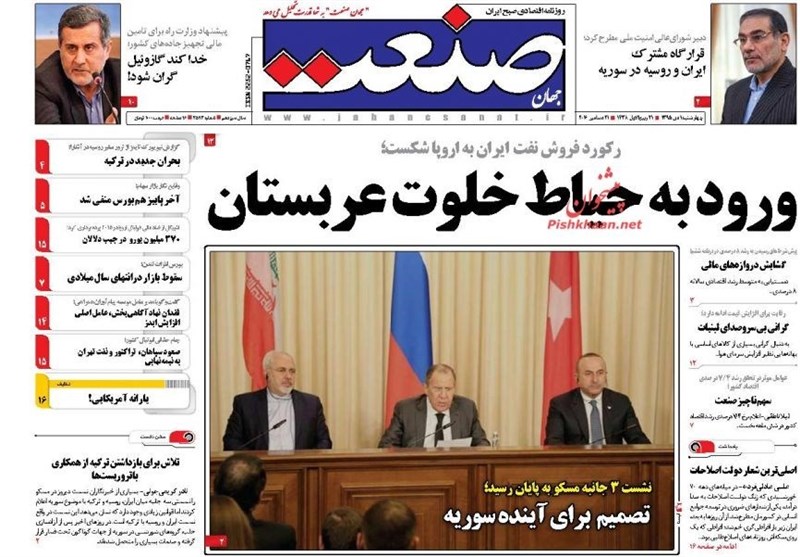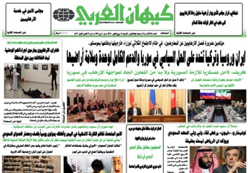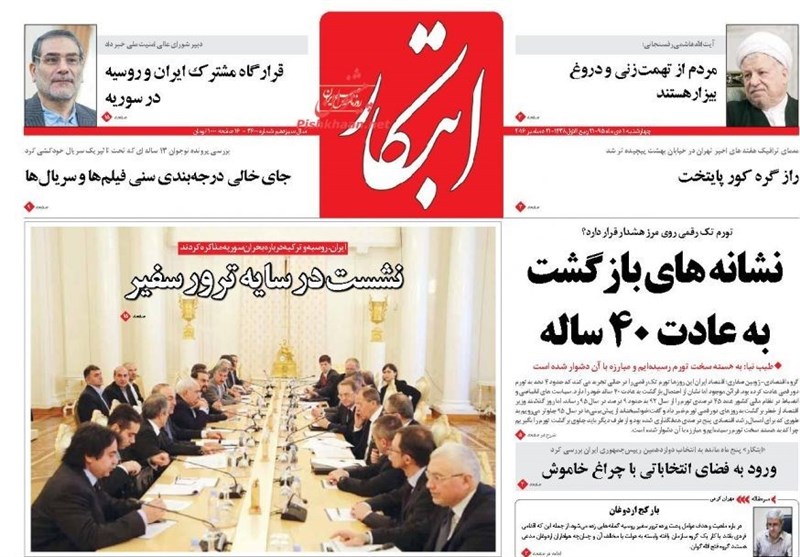 تداولت الصحف الإيرانية الصادرة بطهران صباح اليوم الاربعاء مجموعة من الموضوعات والتقارير الخبرية، ابرزها الاجتماع الثلاثي الايراني الروسي التركي حول سوريا وردود الافعال حول اغتيال السفير الروسي.