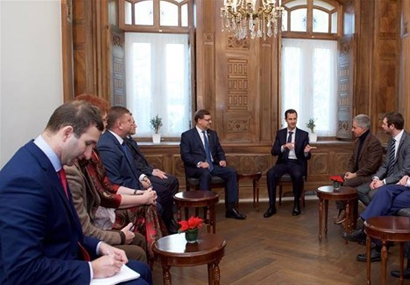 وقدم الرئيس الأسد لأعضاء الوفد عرضا عن تطورات الأحداث في سوريا مجيبا عن أسئلتهم بهذا الخصوص حيث اعتبر أن هذا الوفد كونه يضم نوابا من عدد من الأحزاب الأوروبية ومن روسيا هو إشارة مهمة إلى أن لروسيا والدول الأوروبية مصالح مشتركة مؤكدا على الدور المهم الذي يلعبه البرلمانيون في التعبير عن مصالح شعوبهم .