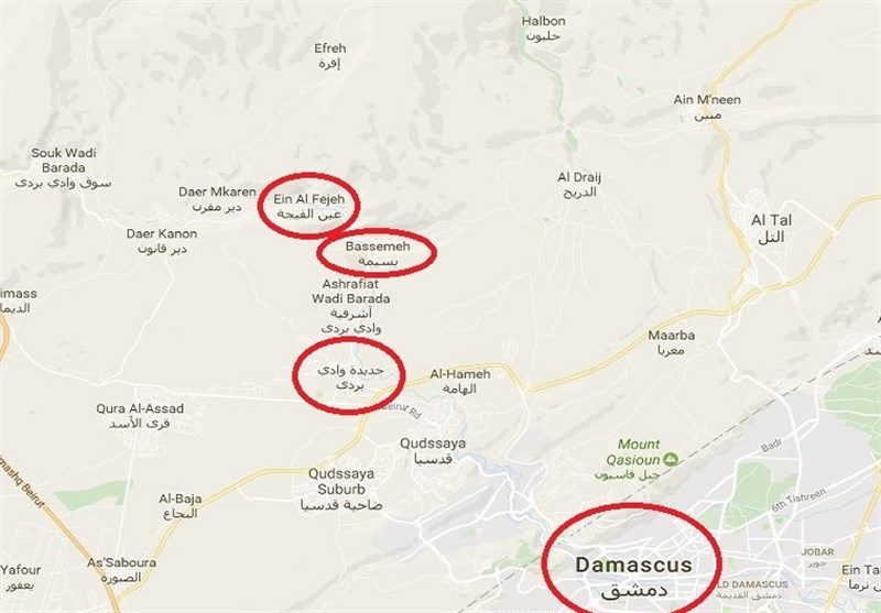 وكانت قيادة الحرس الجمهوري اجتمعت أمس مع قيادات المسلحين في بلدة "دير قانون" في وادي بردى بينهم امير احرار الشام في "عين الفيجة" وتم الاتفاق على عدة بنود ابرزها دخول ورشات اصلاح النبع.