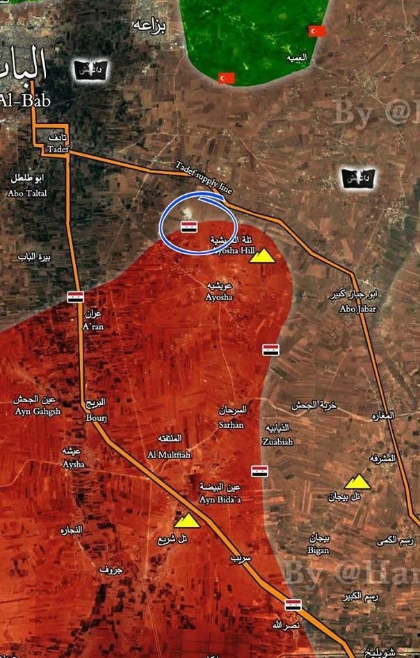في وقت استولى داعش على مدرعة للجيش التركي وقام عناصره بإحراقها عند اطراف بلدة "بزاعة" قرب مدينة الباب في ريف حلب الشمالي الشرقي.