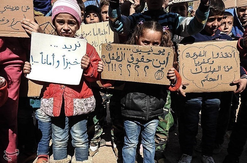 دمشق - تسنيم: لم يجد أهل الفوعة هذه المرة أحداً يستنجدون به إلا الله، فتحت نداء "نريد خبزاً يا الله" انطلق أهالي بلدتي الفوعة وكفريا في مناشداتهم واستغاثتهم للعالم أجمع، حيث بات مطلب البلدتين المحاصرتين بريف إدلب الشمالي يتمثل فقط في رغيف خبز بعد أن فتك الجوع بأجساد الجميع صغاراً وكباراً.