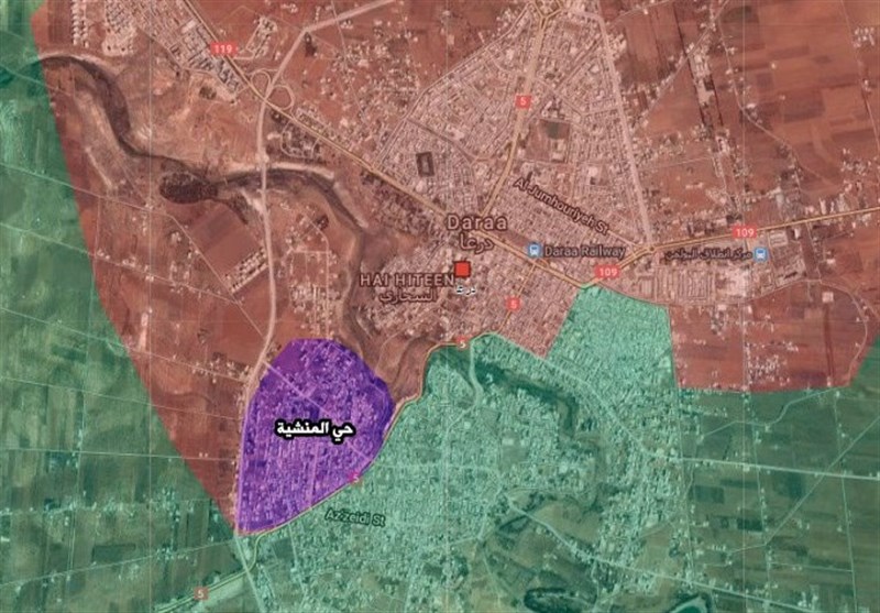 ثانياً؛ يمتلك حي المنشية موقعاً استراتيجياً كونه يطلّ على وادي "الزيدي" الفاصل بين حيي "درعا المحطة" و"درعا البلد" كما يُشرف على الطريق الواصل بين "درعا البلد" و "الرمثا" (الأردنية) التي تبعد 3 كيلومترات عن الحدود السورية الأردنية.