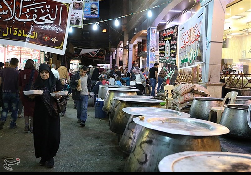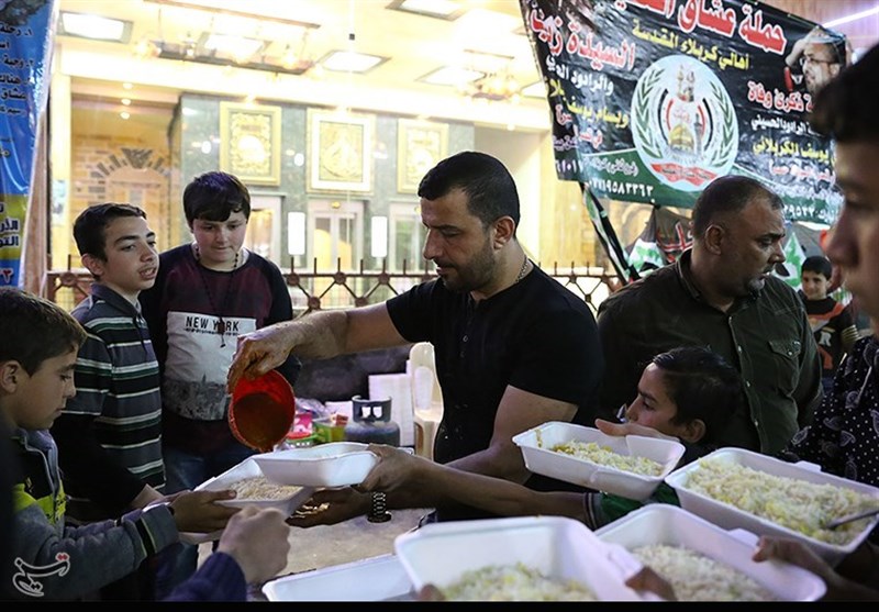 عشاق أمير المؤمنين ممن لديهم مضافات ومحالّ إلى جانب مقام العقيلة زينب، احتفلوا في نهاية هذه المناسبة على طريقتهم وقاموا بتوزيع مختلف أنواع الأطعمة والحلويات على جميع الزائرين.