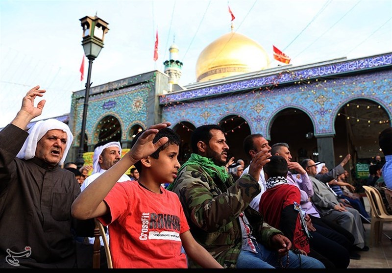 أصوات المنشدين صدحت في هذا الحفل تعدّد مناقب ابن عمّ رسول الله، وسط تفاعل لافت من الجماهير الذين حضروا إلى ضريح السيدة زينب عليها السلام، غير آبهين بتهديدات الإرهابيين وقذائف حقدهم.