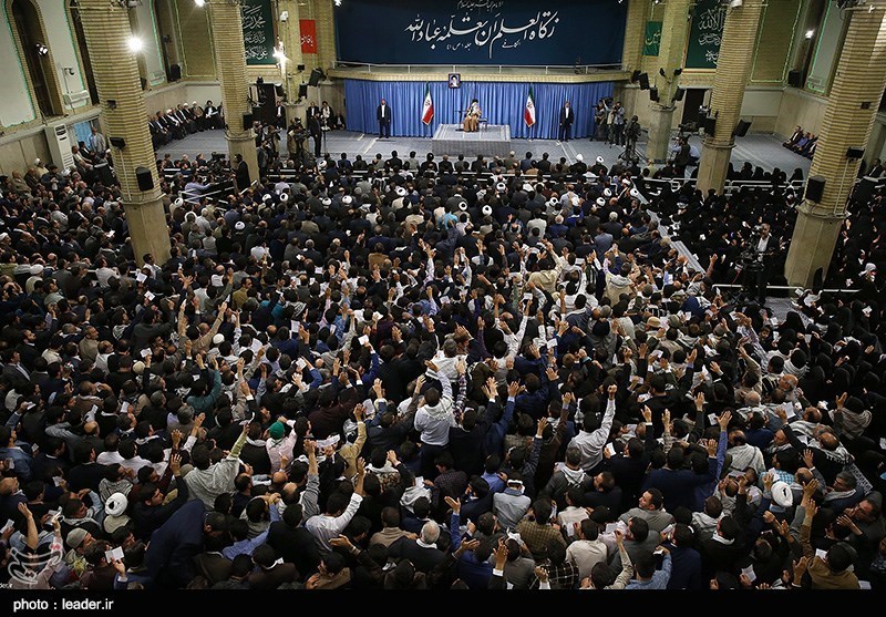 الامام الخامنئي قال إن العدو لا يحسب حساب لهذه الحكومة أو تلك، فهو عندما يستطيع سينفث سمّه بدون أن ينتبه له أحد وبدون أن يأخذ بعين الاعتبار للألاعيب اللفظية والكلامية والتموضع السياسي. وأضاف:"ما يمنع العدو هو الخوف من تواجد الشعب، لأنه يخاف أن يقف بوجهه بلد من 80 مليون شخص".