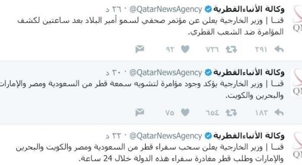 وبمجرد نشر الخبر تناقلته وسائل الاعلام العربية، فيما شن الاعلام السعودي هجوما على قطر والأمير القطري، وأفادت وكالات بأن الامارات قامت على الفور بحظر موقع الجزيرة القطري، الضغوط تصاعدت على قطر من عدة دول، ولاحقا أعلنت الوكالة القطرية أن وزير خارجية قطر امر بسحب سفراء البلاد من السعودية ومصر والكويت والبحرين والإمارات، وامهل سفراء هذه الدول 24 ساعة لمغادرة أراضيها.