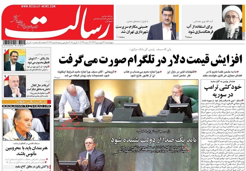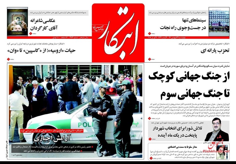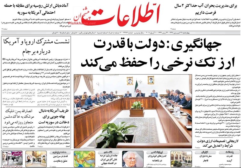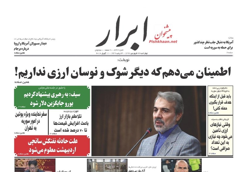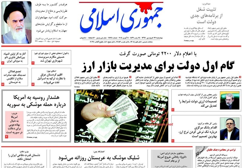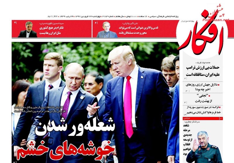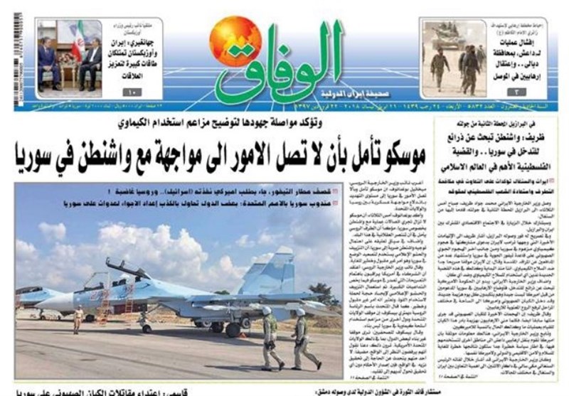 طهران / تسنيم // تداولت الصحف الايرانية الصادرة الاربعاء ( 11 ابريل 2018) بطهران، عددا من القضايا المحلية والاقليمية والدولية، من أبرزها الانباء التي تتحدث عن احتمال توجيه ضربة عسكرية أمريكية لسوريا.