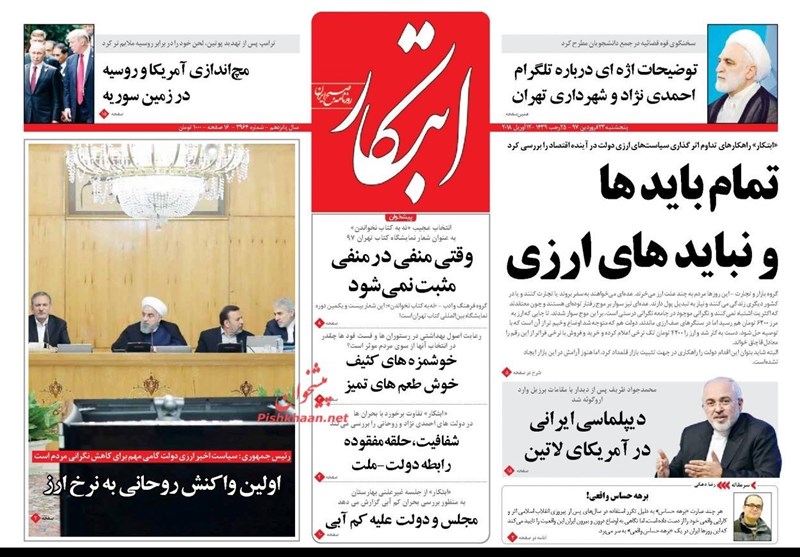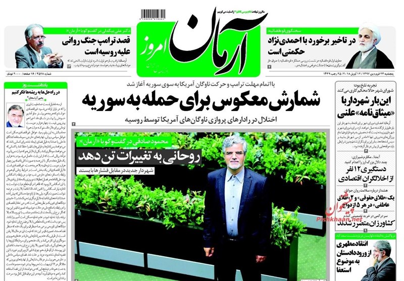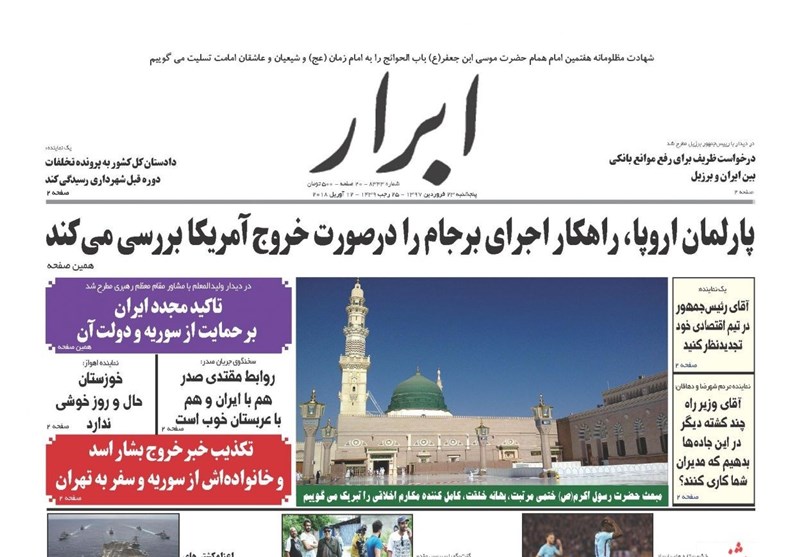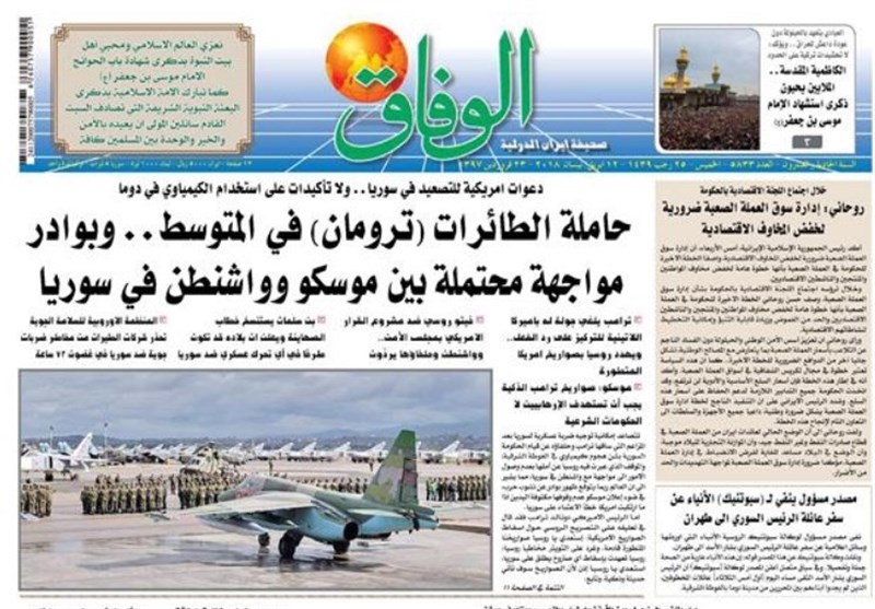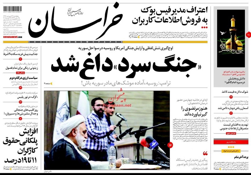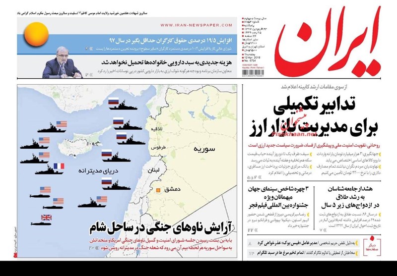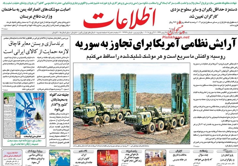 طهران / تسنيم // تداولت الصحف الايرانية الصادرة الخميس ( 12 ابريل 2018) بطهران، عددا من القضايا المحلية والاقليمية والدولية، من ابرزها الانباء التي تتحدث عن احتمال شن عدوان أمريكيا على سوريا والتحضيرات العسكرية الروسية الامريكية.