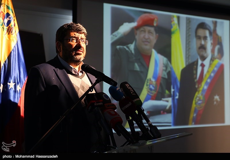 من جهته أعرب السفير الفنزويلي في طهران عن شكره للدعم الحكومي والشعبي والطلابي في ايران، قائلا، ان بلادنا تتعرض لتدخل الامبريالية لكنها اصطدمت الان بوحدة الشعب الفنزويلي.