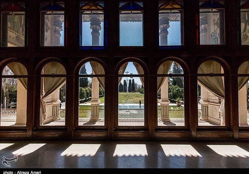 الطابق الأول: أي الطابق السفلي والذي تحَوّل إلى متحفٍ عسكريٍّ ويحوي بداخله نافورة مشيّدة ونوافذ مشبّكة ملوّنة وسلالم ثلاثة يمكن من خلالها الوصول إلى الطابق التالي. والمُتحف العسكري هذا يعتبر أحد أكبر وأروع المتاحف الموجودة في منطقة الشرق الأوسط. متزامناً مع عام 1962 الميلادي تمّ شراء العمارة من قبل الجيش الإيراني إذ تعرّضت للتطوير وتعمل الآن كمتحفٍ عسكريٍّ يعرض للسائح مجموعةً متنوّعة ومدهشة من الأسلحة الإيرانية الساخنة منها أو الباردة والآلية منها أو نصف الآلية، ومن أهمّ نفائسه التاريخية هي الأسلحة الخاصّة بالملوك القاجاريين مثل بندقية فتح علي شاه، ناصر الدين شاه، مظفر الدين شاه من القاجار، رضا شاه وحمد رضا شاه من العائلة البهلوية، ورشاش رئيس علي دلواري .وعند سلالم المدخل يمكنكم مشاهدة مدفع فتح علي شاه القاجاري.