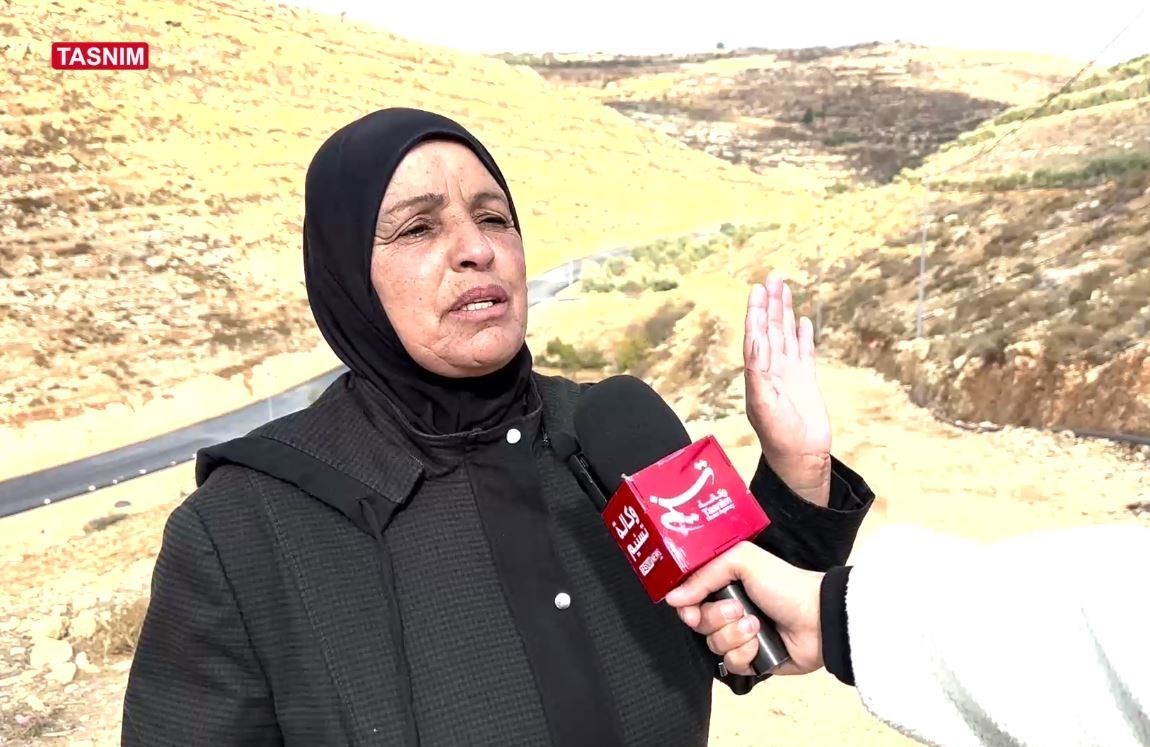 تقول السيدة عاليا شلالدة خلال لقاءها مع وكالة تسنيم الدولية للأنباء ان المستوطنين جائوا مع الامن وقاموا بهدم بيتي وسرقوا اغراضي كلها وكسروا البوابة وصادرو كل شي ولم يتركوا لنا شيء، قاموا بتكسير شجر الزيتون حتى اشجار العنق قاموا بقصها بالمقص يريدون تهجيرنا من هنا ويريدون اخراجنا من ارضنا نريد ان نبقى في ارضنا ولا نريد ان نخرج منها، تعبنا وتعب آباءنا واجدادنا.