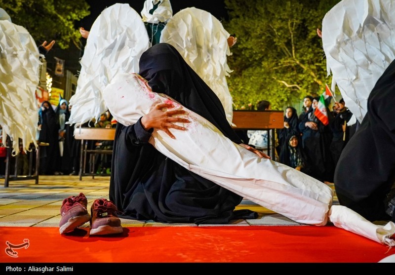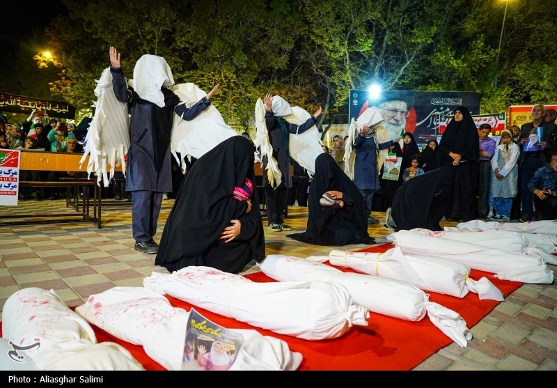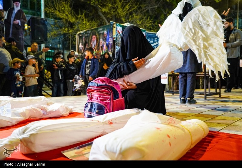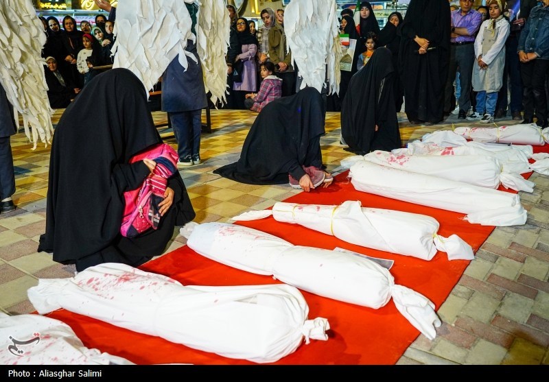 TEHRAN (Tasnim) - A street theater performance was held on the main street of Bojnourd in northeast Iran to pay tribute to nearly 170 schoolchildren and teachers that died in a brutal US-Israeli airstrike on an elementary school in Iran’s southern city of Minab on February 28.