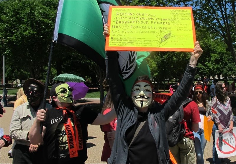 The demonstrators in Washington chanted slogans like "boycott Monsanto" and "Monsanto, stop killing our world".