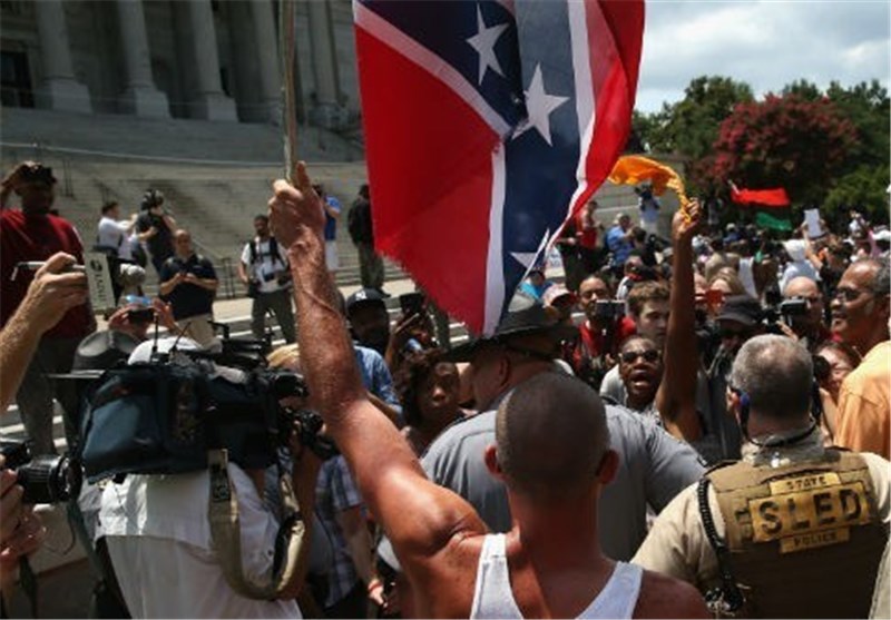 TEHRAN (Tasnim) - A sea of Confederate flags held by screaming Ku Klux Klan members fluttered in front of the South Carolina Statehouse, just as a counter rally featuring African flags on the other side of the Capitol wrapped up.
