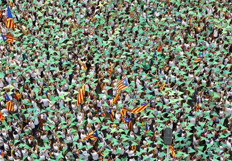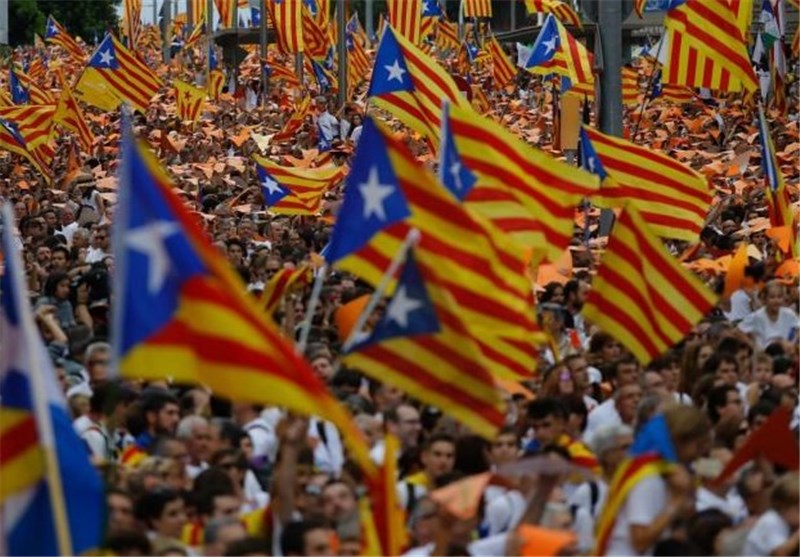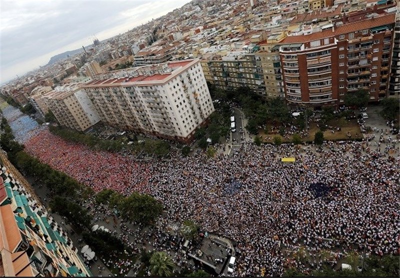 TEHRAN (Tasnim) – Hundreds of thousands of separatist-minded Catalans swarmed Barcelona, giving enthusiastic backing to independence advocates who are hoping to elect a majority of secessionists in the regional parliamentary election this month, media reports said.