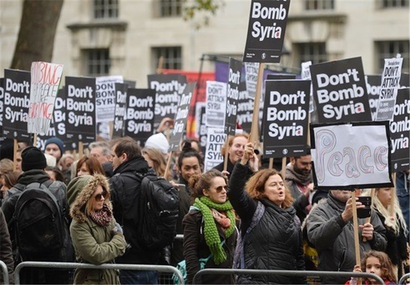 Chants of, "Don't bomb Syria" and, "David Cameron - shame on you" rang through Whitehall.