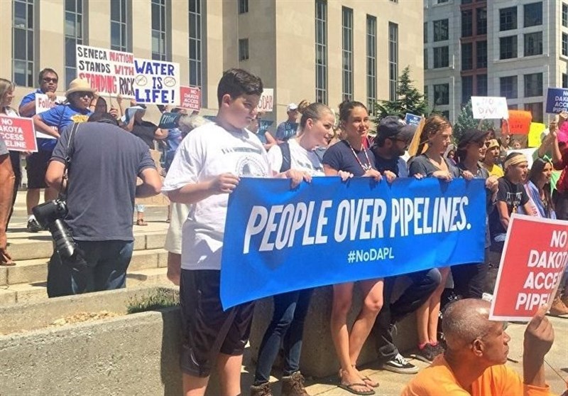 WASHINGTON, DC (Tasnim) – Hundreds of people took part in rally near the White House to voice their solidarity with the Native Americans who are protesting the construction of a billion dollar oil pipeline and destruction of an old cemetery in the US state of North Dakota.