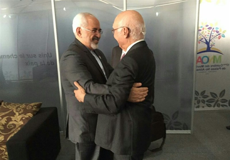 In a separate meeting, the Iranian foreign minister and his Pakistani counterpart Sartaj Aziz explored avenues for closer cooperation between Tehran and Islamabad in international organizations.