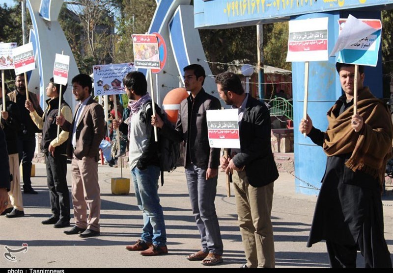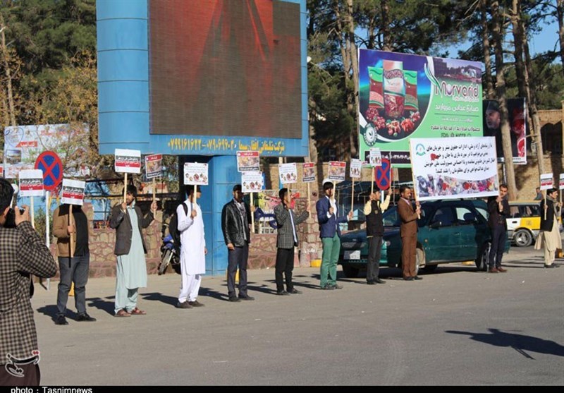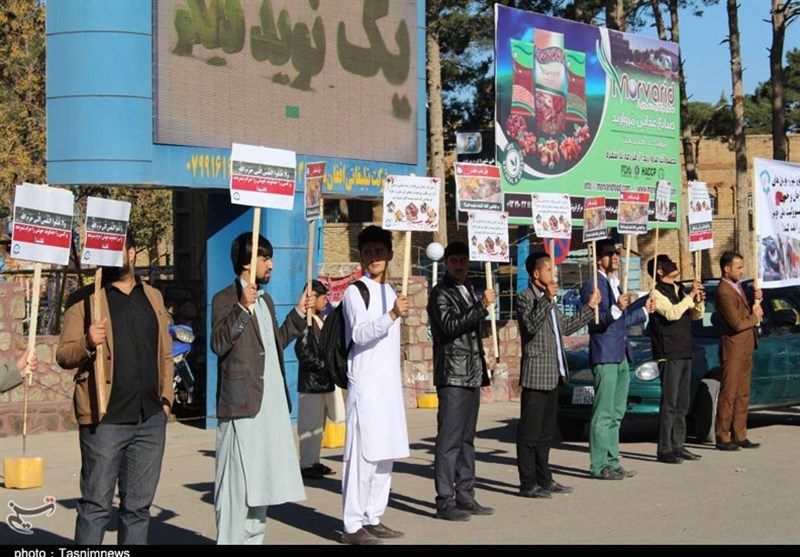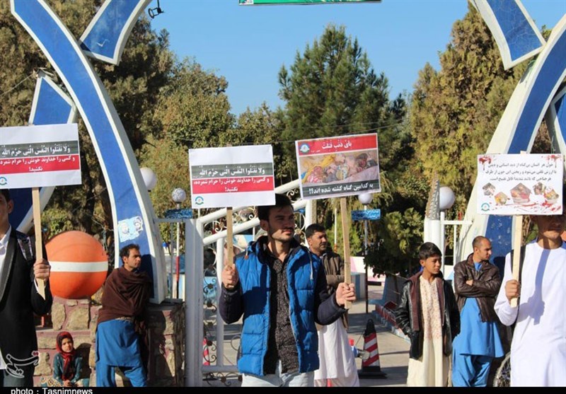 Carrying signs in commemoration of the civilians killed in the aerial attack in Kunduz, protesters in Herat condemned military operations by the US and NATO that continue to cause collateral damage in their country.