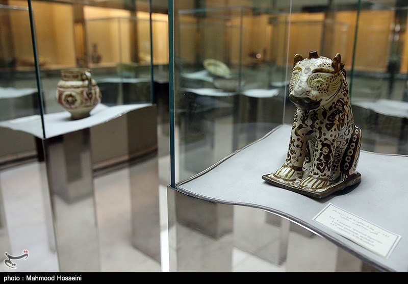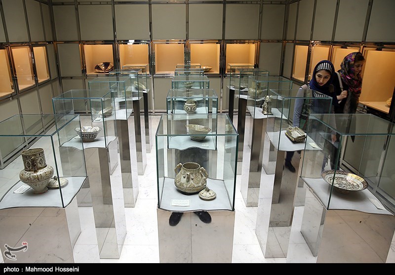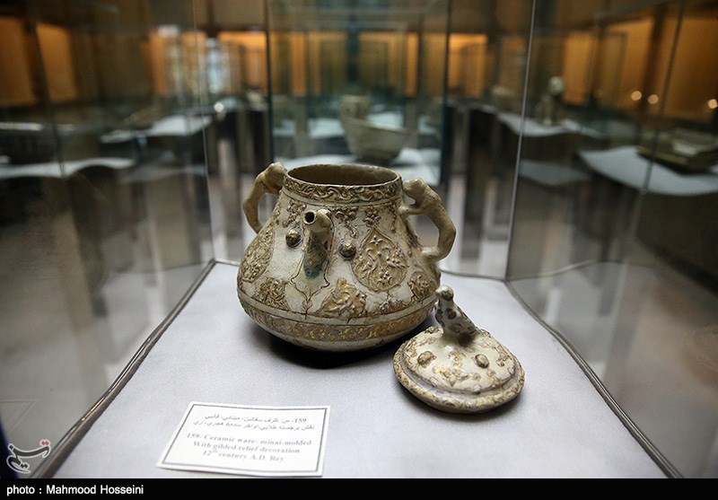 The Shell Hall which is called so because it looks like a half-open shell contains all sorts of pots from the third and fourth century, Neyshabur. The fourth hall (the golden) which is called so because of golden dishes from the Seljuk era contains pots whose rims are garnished with Naskh and Nastaligh Calligraphy writings. Mongolian faces also attract attention on these dishes which are of different types depending on which town they have been found in. the fifth hall (azure) is called so because of the light blue color of turquoise and belongs to the seventh and eighth century of Ilkhani era.