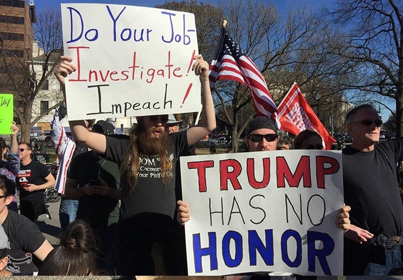 The protesters also wielded “Dump Trump” signs and called on Congress to impeach the recently inaugurated president.