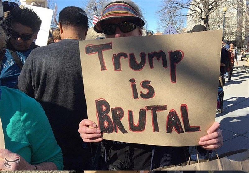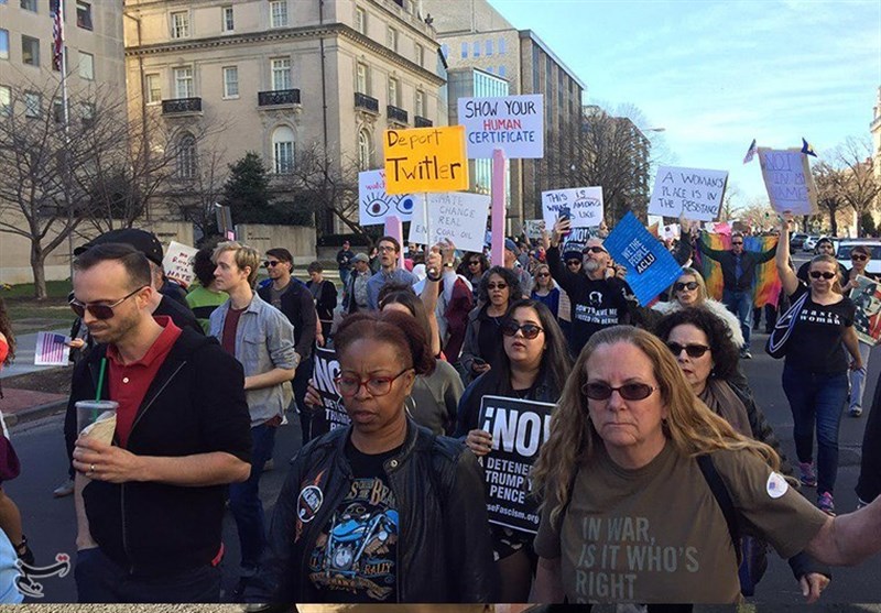 The demonstrators chanted slogans, including “Deport Twitter”, “Show Your Human Certificate”, “Trump is Brutal”, “People Power Defeats Propaganda”, and “Trump Has No Honor”.