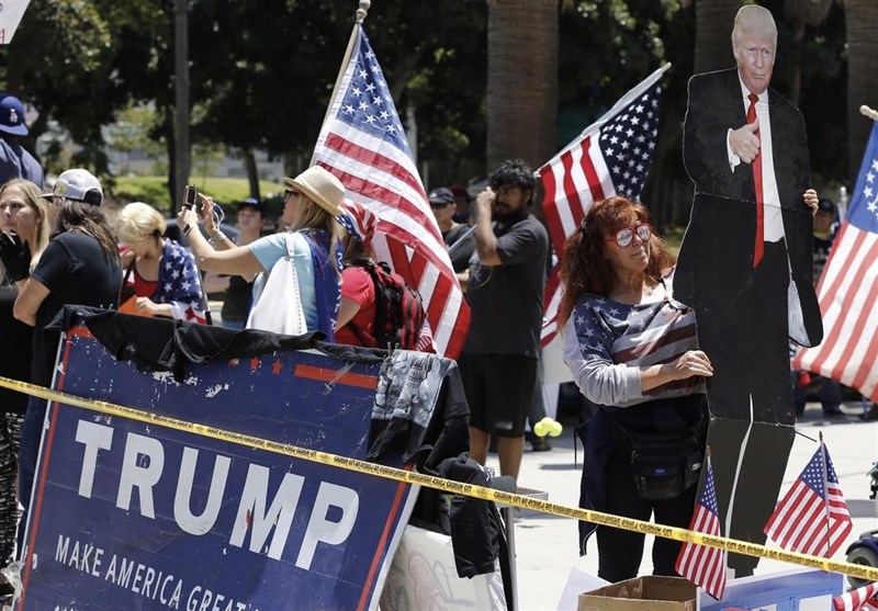 In Los Angeles, they carried a black coffin draped in red, white and blue flowers, topped with a hand-written sign: "The Presidency 1789-2017."