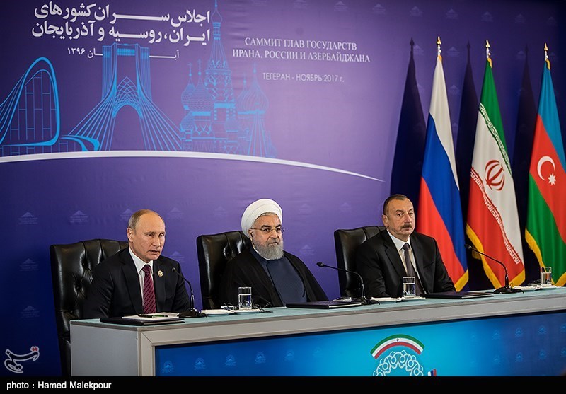 Hassan Rouhani of Iran, Russia’s Vladimir Putin, and Ilham Aliyev of Azerbaijan held their second tripartite meeting in Tehran on Wednesday to discuss the latest regional developments and mutual cooperation.